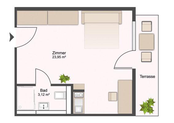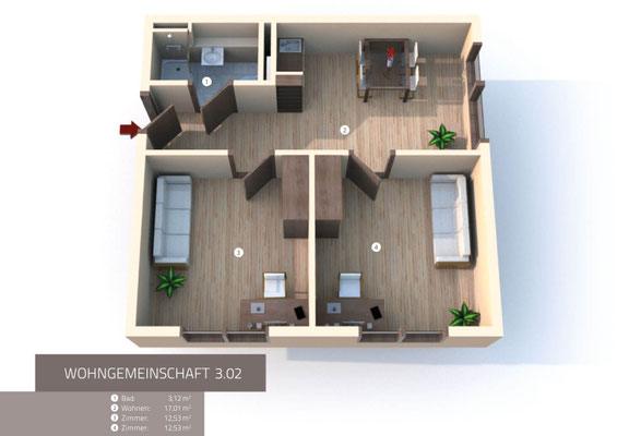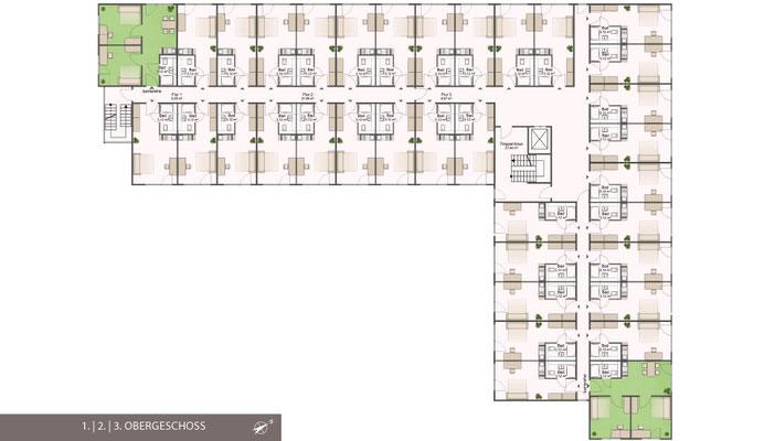 Alle Apartments und Wohngemeinschaften sind modern und nutzerorientiert möbliert und verfügen jeweils über eine Kleinküche und ein Duschbad. Den Bewohnern stehen ein Gemeinschaftsraum mit einer Fläche von rund 76 Quadratmetern, eine Waschbar mit etwa 24 Quadratmetern und ein großzügiges Foyer mit circa 35 Quadratmetern zur Verfügung.