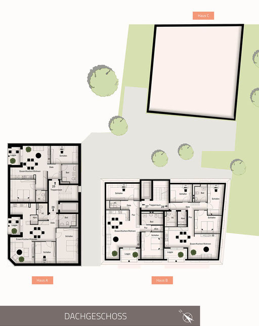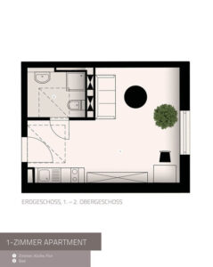 Die Apartments verfügen über Kleinküche und Duschbad, Highspeed Internet und Kabelanschluss. In den Häusern A und B stehen Waschräume mit 19,97 m² und in Haus C mit 18,94 m² zur Verfügung. Insgesamt sind 51 Fahrradabstellplätze im Gebäude vorgesehen. Die Tiefgarage bietet Platz für 40 Pkws, optional kommen zwei Aussenstellplätze hinzu. Ein eigener Hausmeister betreut die Anlage. Das Projekt wird in ressourcenschonender Bauweise nach Energiestandard EnEV 2016 realisiert.