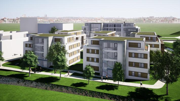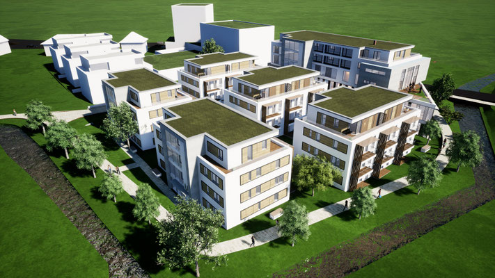 An der Goethestraße in Stockach entsteht ein Wohnensemble aus fünf Mehrfamilienhäusern. Insgesamt sind 52 moderne 2 bis 4 Zimmer Wohnungen geplant. Die Gesamtwohnfläche beträgt rund 4.100 Quadratmeter. Eine Tiefgarage mit 72 Stellplätzen sorgt für ausreichend Parkraum direkt am Objekt.