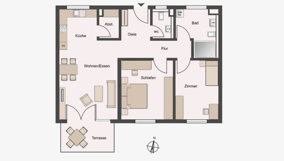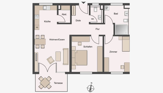 Im Fokus des Projekts steht funktionales, zeitgemäßes Wohnen mit hoher Aufenthaltsqualität. Die Grundrisse sind klar strukturiert, mit gut nutzbaren Wohn Ess Bereichen und möblierbaren Zimmern. Die Ausrichtung der Balkone und Terrassen bringt viel Tageslicht in die Wohnungen und erweitert den Lebensraum nach draußen.